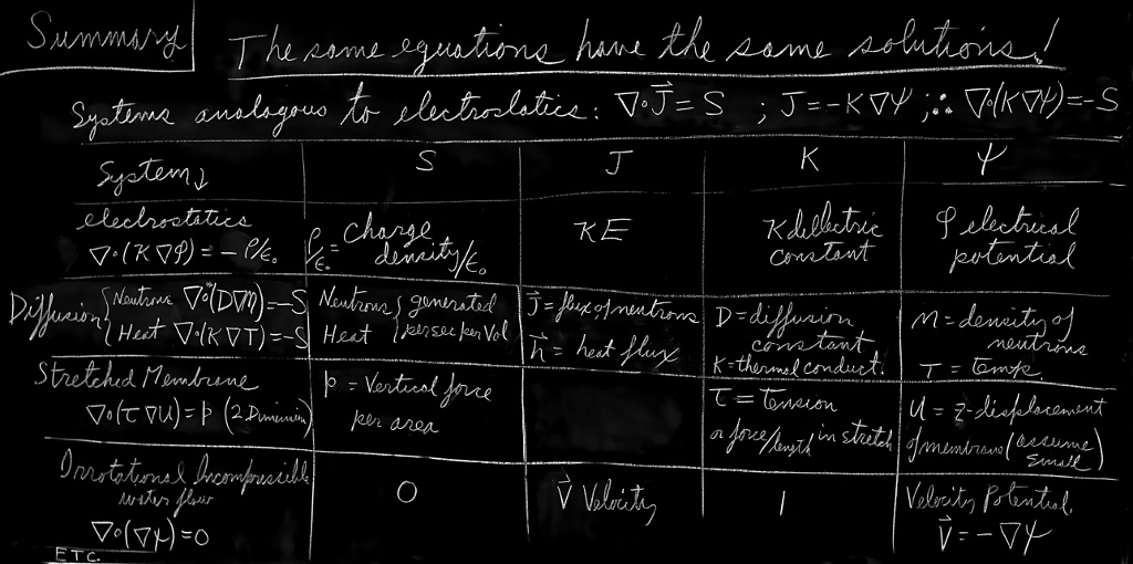 Richard Feynman made a famous observation: Even though the scope of Physics is vast, It is possible for a physicist to get a broad knowledge of the physical world for three reasons: 1/ There are general principles that apply to many phenomena (e.g. conservation of energy and momentum) 2/ Many complex phenomena depend on a few fundamental laws (i.e. electricity and quantum mechanics) 3/ There is a remarkable coincidence: The equations for many different physical situations have exactly the same appearance. Some have called it the ‘unity of nature’ but Feynman has a beautiful explanation: one thing common to all of these phenomena is space – and once you grasp that, it comes down to understanding the rates of change of quantities with position in space. Obviously, I am not doing justice to this – he devoted an entire lecture to this topic (see link below). Definitely worth a read.