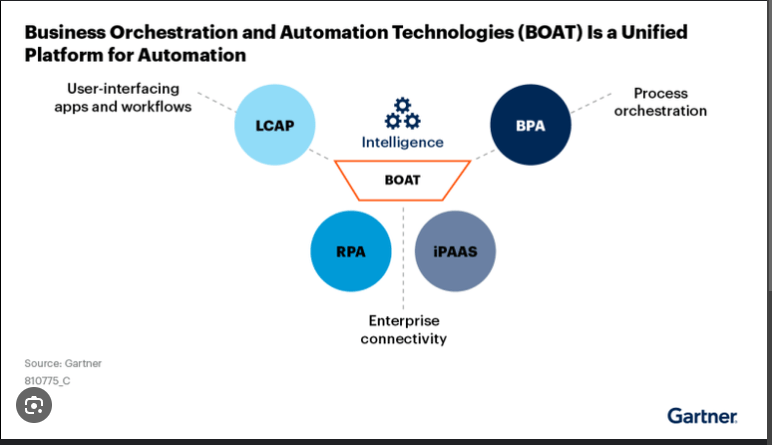 2/Agentic AI Systems: The shift in focus to improving inference capabilities with ‘Agentic AI’ is making it possible to truly re-engineer business processes. The traditional RPA (Robotic Process Automation) software required deterministic flows, which meant that RPA would throw an exception whenever a scenario that was not pre-programmed presented itself. And in a world where exceptions are becoming more common (fat-tail distributions is a favorite topic of mine – will come back to this next week!), Agentic AI presents the possibility of being given an outcome goal (e.g. a target SLA), a set of resources (data), and left to plan and execute the necessary tasks. There is obviously lots more to this, but we are already seeing examples of Agents in use. In the legal contract chatbot example, the AI Agent ‘evaluates’ procurement contracts to identify possible exceptions – for instance, invoking the forecast and assessing the probability of shifting to a different price tier and using that to alert a potential remediation action to the buyers. It is early days yet, but the prospects are tremendous. We can expect to see a huge surge in the adoption of ‘AI as a Service’, or as Gartner (see Figure 3) is calling this new capability: ‘BOAT’ (Business Orchestration and Automation Technologies)